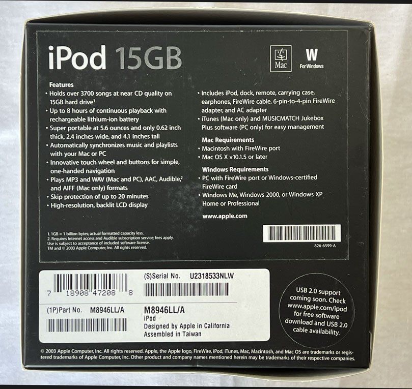 The 3rd generation 15GB iPod was introduced in 2003 and replaced in 2004.