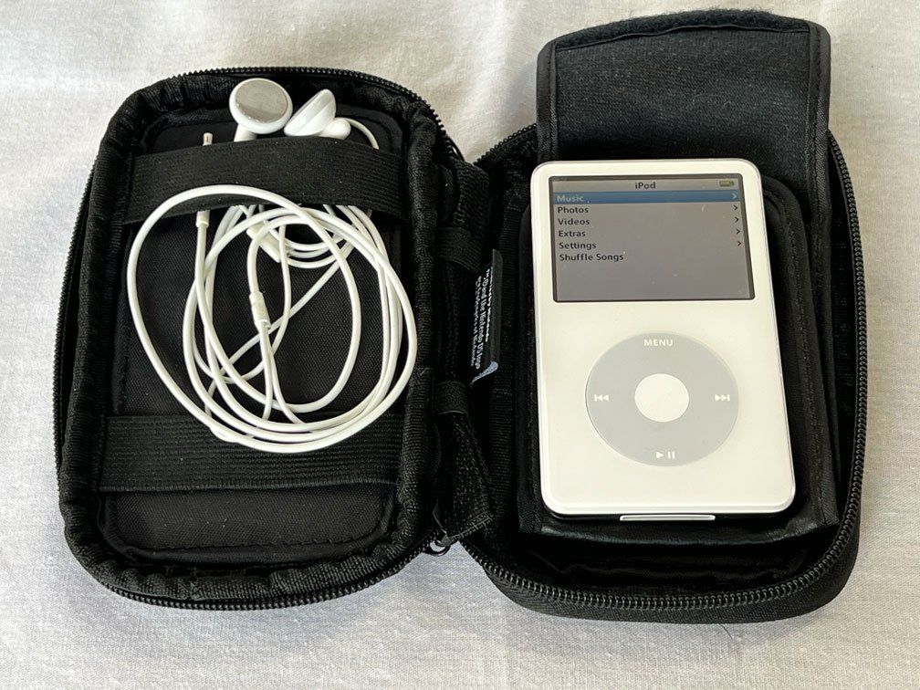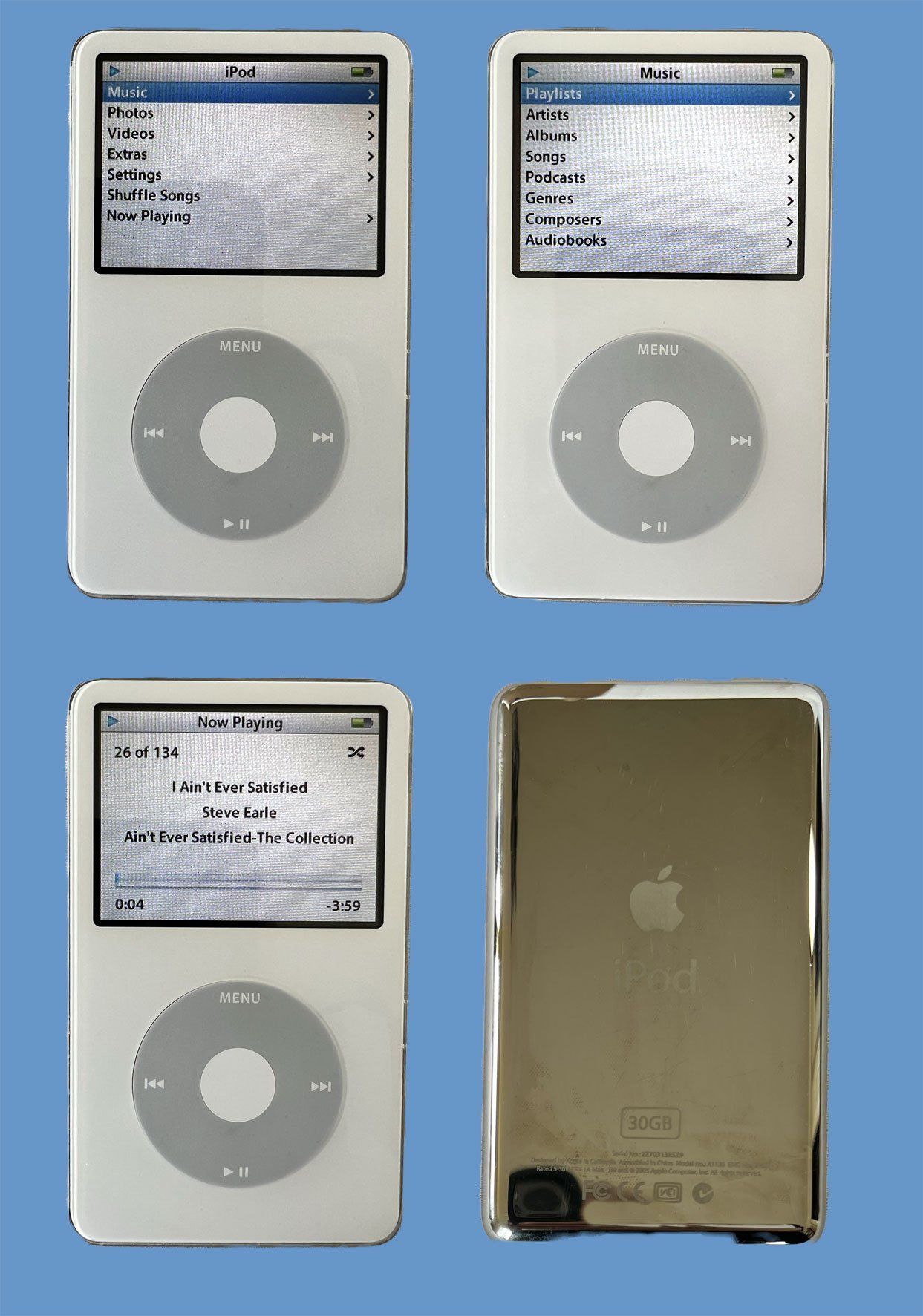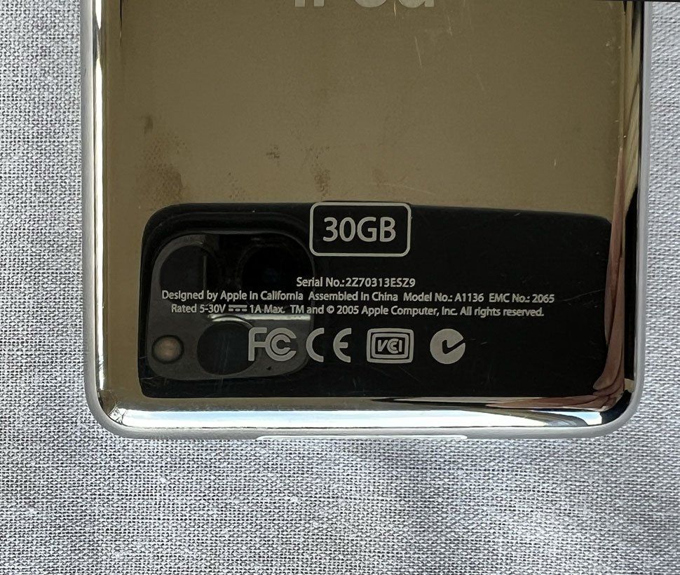 30GB iPod was redesigned with a slimmer case, and a larger screen with video playback. Removed were the remote connector near the headphone jack and FireWire syncing. 80GB was added in 2006. It was replaced in 2007.