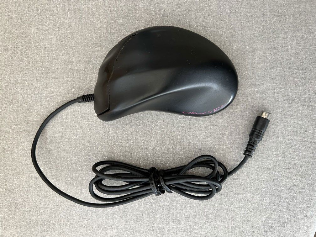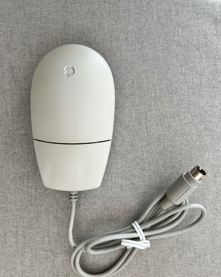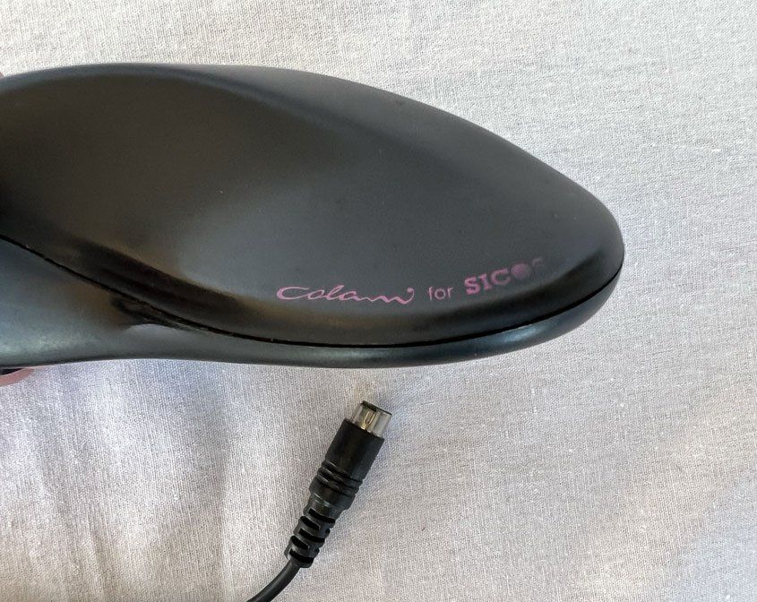 Two typical ADB mice, one by Apple, the other a rare contoured shape made by SICOS. ADB (Apple Device Bus) peripherals spanned the market for nearly a decade, beginning in 1988.