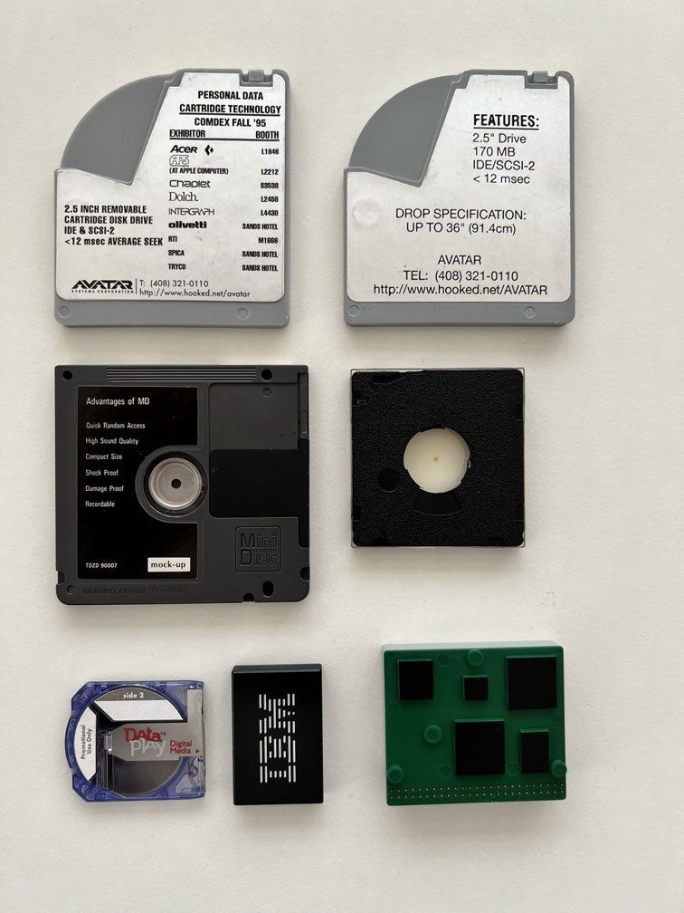 These were introduced during the movement toward truly portable mini storage media. This is a collection of prototypes and display models for a number of early attempts at mini-discs for maximum storage.