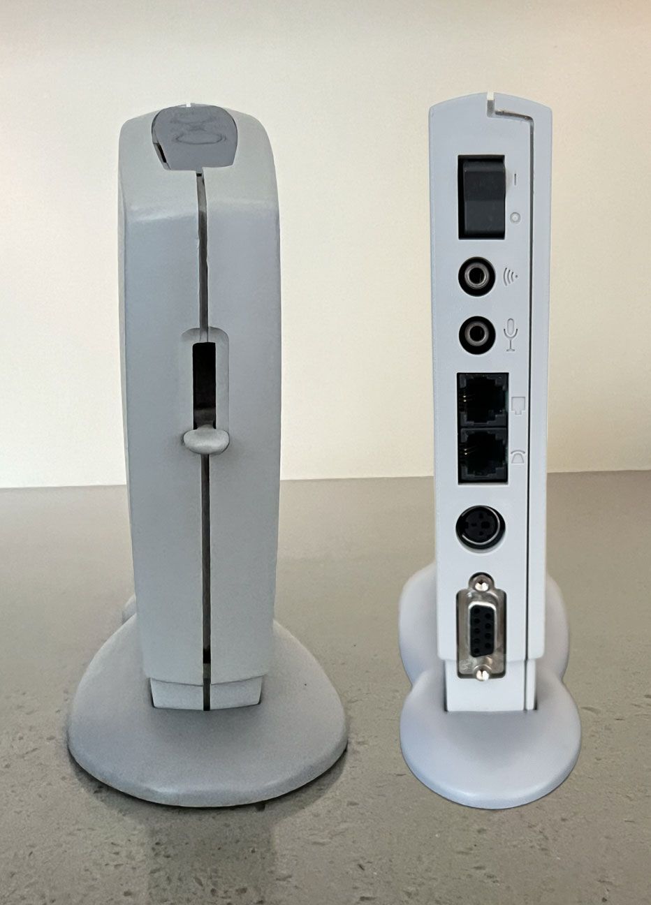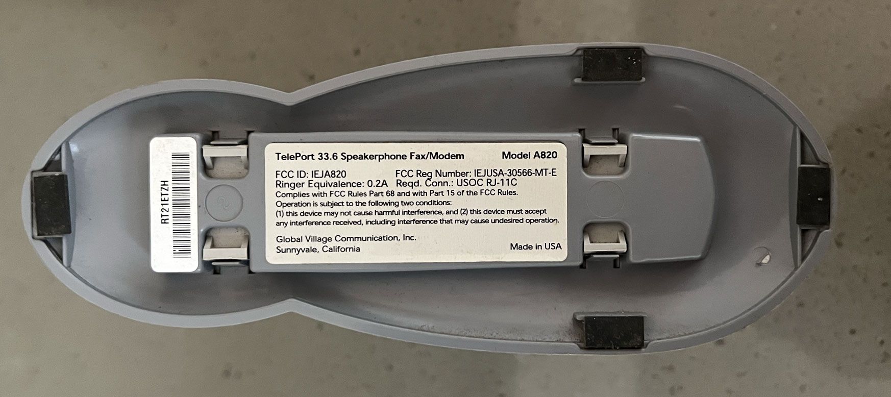 Global Village combined a telephone modem with a speakerphone and a fax machine. The microphone was wired with a 24-inch cable.